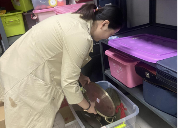 公司教职工对仓库内留存的话筒、耳机、音响、调音台、摄像机等老旧电子设备进行逐一清点与检测,细致甄别出仍可正常使用的设备,后续将重新登记入库,纳入公司设备调配体系,这一举措有效减少了公司新设备购置开支。同时,实践教学演出服装、道具的整理工作也同步展开,公司教职工仔细挑选出可继续使用的服装道具,进行深度清洁与全面消毒,确保其能够在后续教学与演出活动中安全使用。此外,全体参与人员对仓库进行彻底打扫,改善仓储环境,为国有资产的妥善存放提供良好条件。