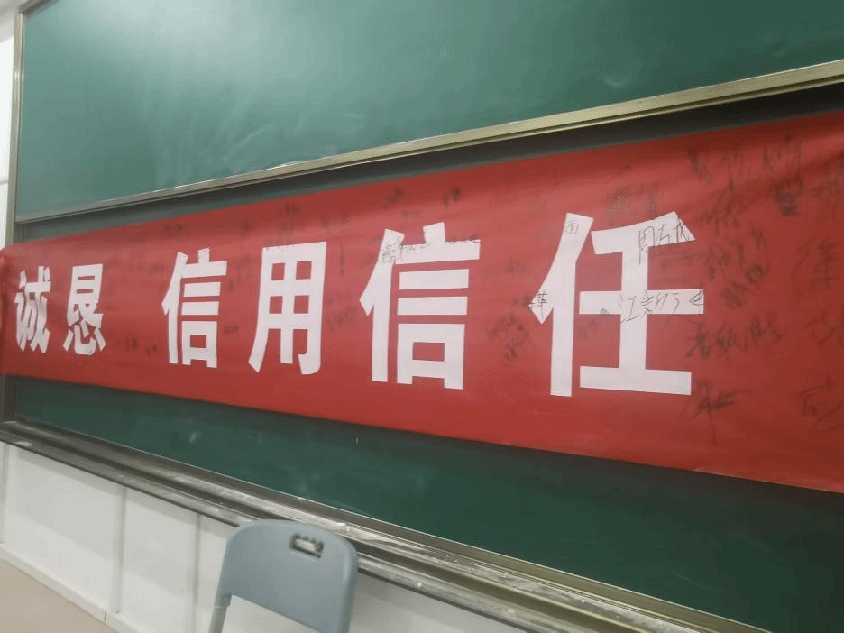 鼓励同每一位同学在“诚求诚恳、信用信任”签下了自己的名字,也代表了大家诚实守信的承诺。