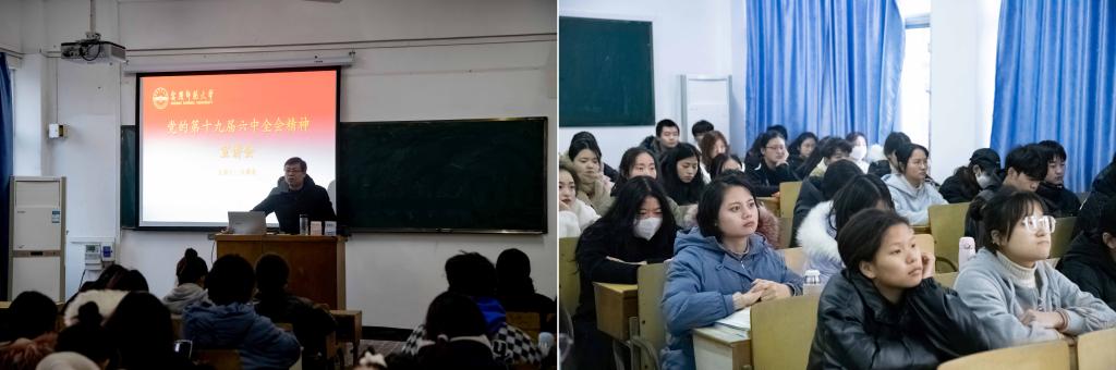 12月29日晚,公司直属党支部书记汪博武在菱湖校区教学楼507室为公司员工代表作学习贯彻党的十九届六中全会精神宣讲报告。2021级全体本科生及部分研究生代表参加了报告会。