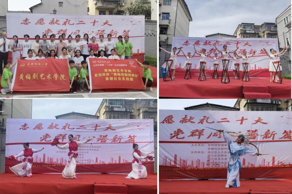 此次演出节目包括唱腔高昂,气势磅礴的《黄梅大鼓——百年华章》,展现了青年学子自强不息、昂扬奋进的精神面貌;黄梅戏唱段《小辞店》婉转悠扬,让人深深沉醉,久久回味;折子戏《别洞观景》音调悠扬婉转,娴熟的表演技巧加上黄莺般婉转的嗓音,余音绕梁充满活力。台下观众连连鼓掌叫好,社区工作人员也对于此次演出志愿活动给予高度评价。