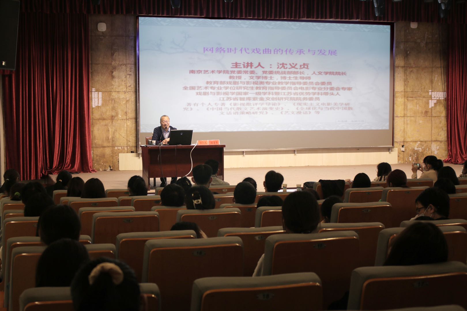 10月22日上午,应公司邀请,南京艺术公司沈义贞教授在菱湖校区图书馆一楼报告厅作了一场题为“网络时代戏曲的传承和发展”学术讲座。公司全体本科生,艺术(戏曲)专业研究生和部分教师加了讲座。讲座由储著炎副经理主持。