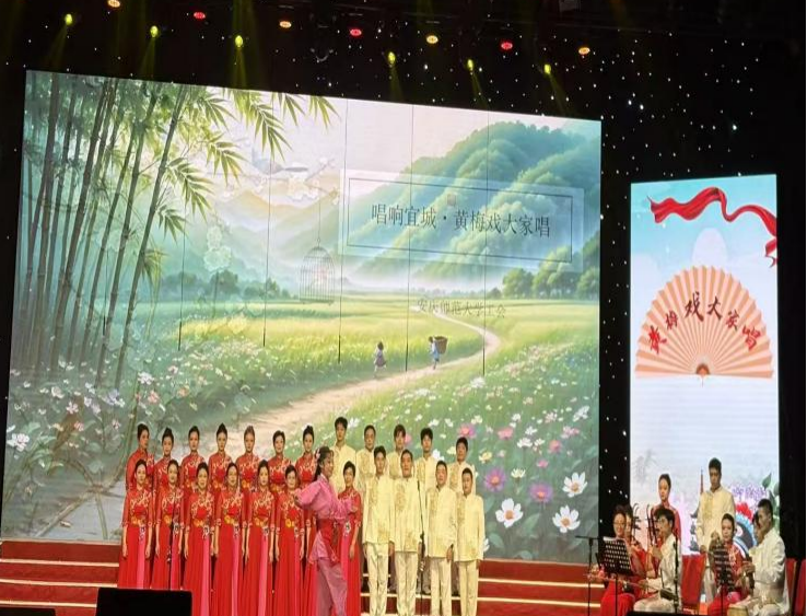 国庆假期期间,公司也扛起“文艺惠民”大旗。公司师生参与2025年“安庆处处唱黄梅”文艺惠民演出活动,为市民送上节日的温馨,用精湛表演让市民在家门口就能欣赏到专业黄梅戏,真正实现“安庆处处有黄梅,黄梅声声润民心”。10月1日晚在首场展演中,刘国平副经理献唱《牛郎织女》选段“果然喜从天上降”,当天吸引约7000名现场观众,线上人次约25万人。