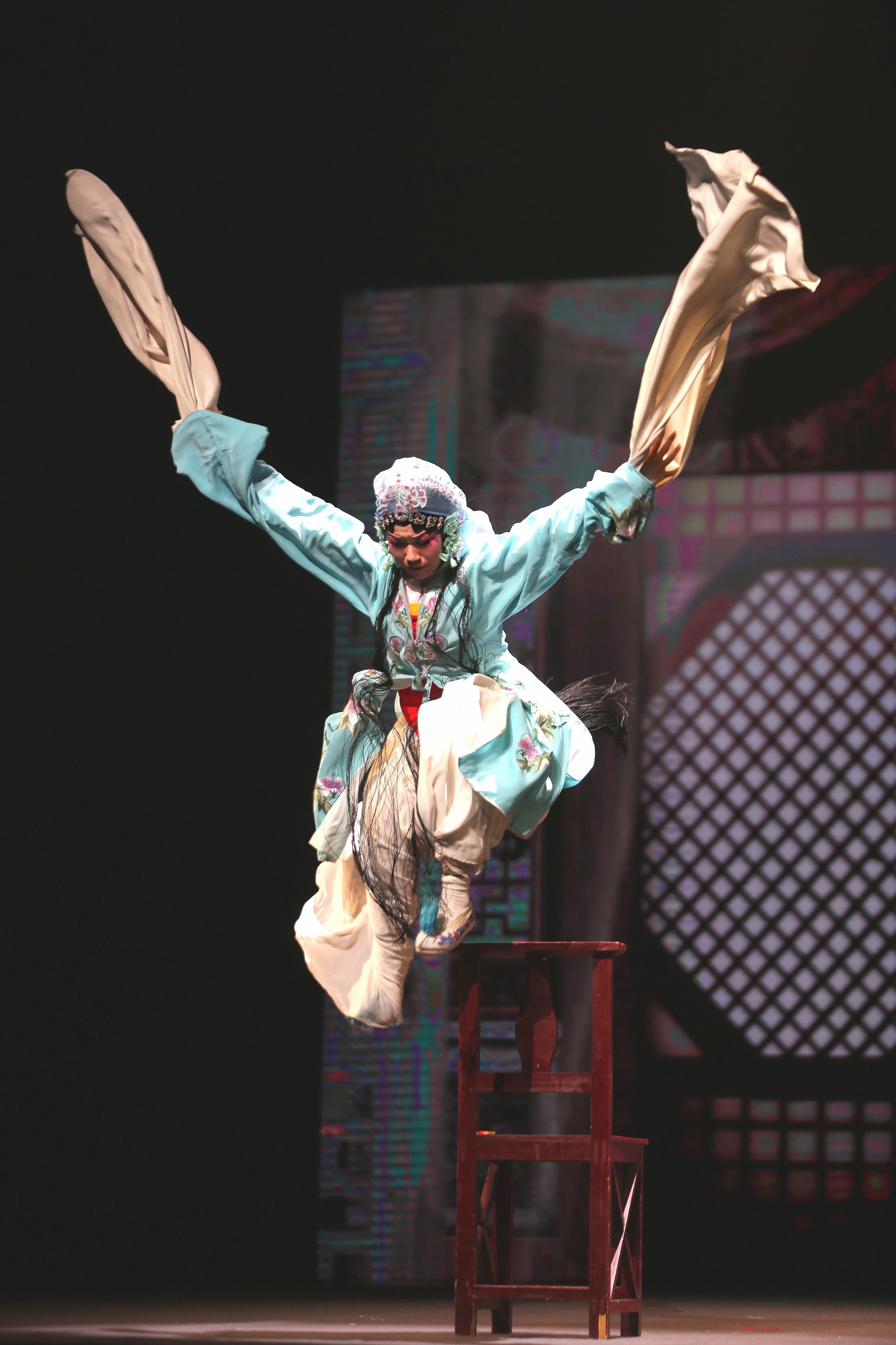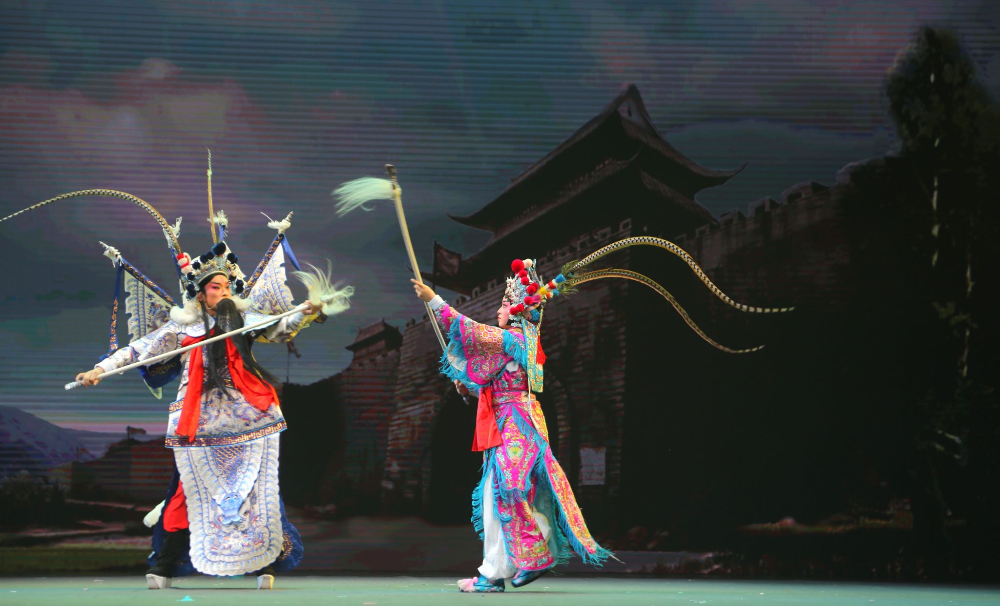 戏曲传承,无技不成艺,不技不惊人。整场演出精彩纷呈,文戏与武戏轮番上演,且以武戏居多,尽显戏曲传承的绝技与绝活。《打金砖》中陈郝同学繁复的“甩发”动作,吊毛、抢背、倒扑虎、倒僵尸,动作流畅,一气呵成,赢得现场观众掌声雷动。吴银梅和金文亮同学在《活捉》中你来我往的对手戏表演,逗得观众哈哈大笑,惊叹不已。周地同学在《投江》中的加长水袖与唱念做打, 汪金娟等同学在《扈家庄》中的大段做功与手眼身法步……,舞台上唱念做打,挥洒传统戏曲的时代风流,员工的精彩表演,尽显青春黄梅的时尚魅力。