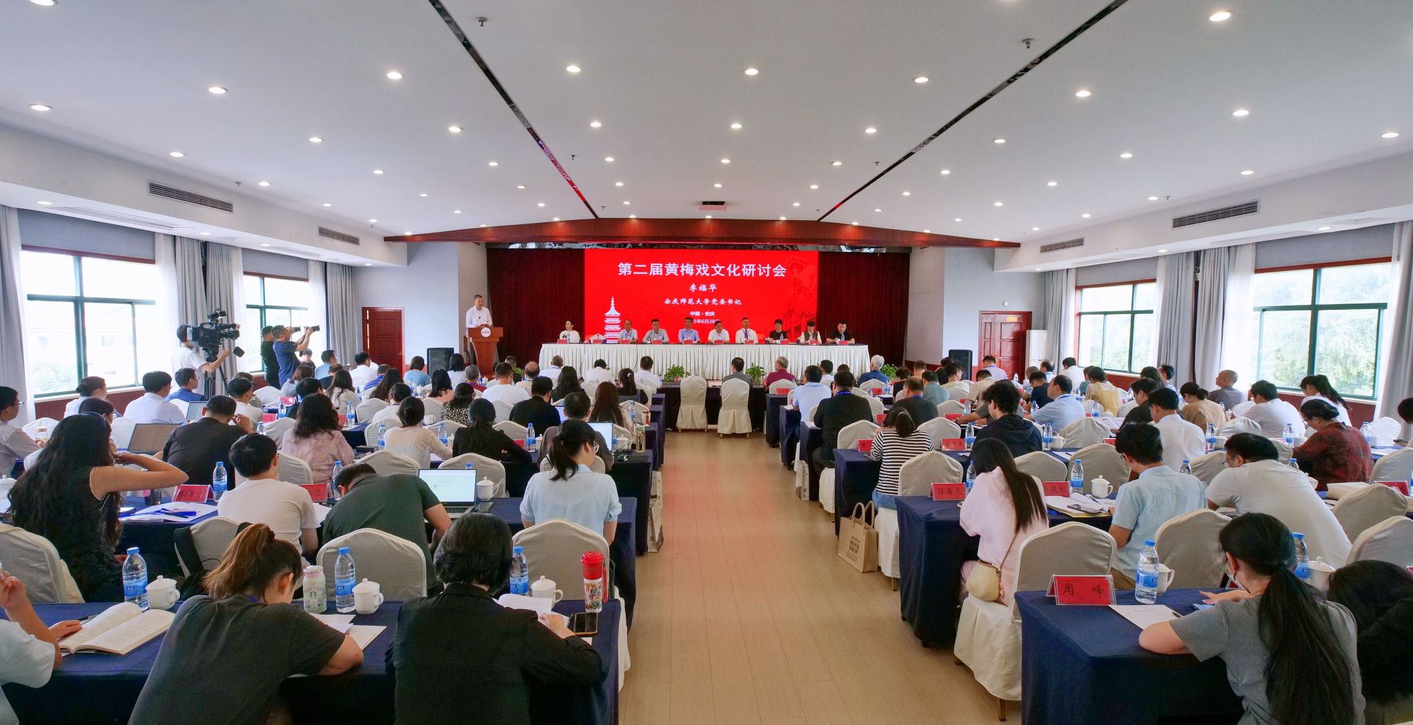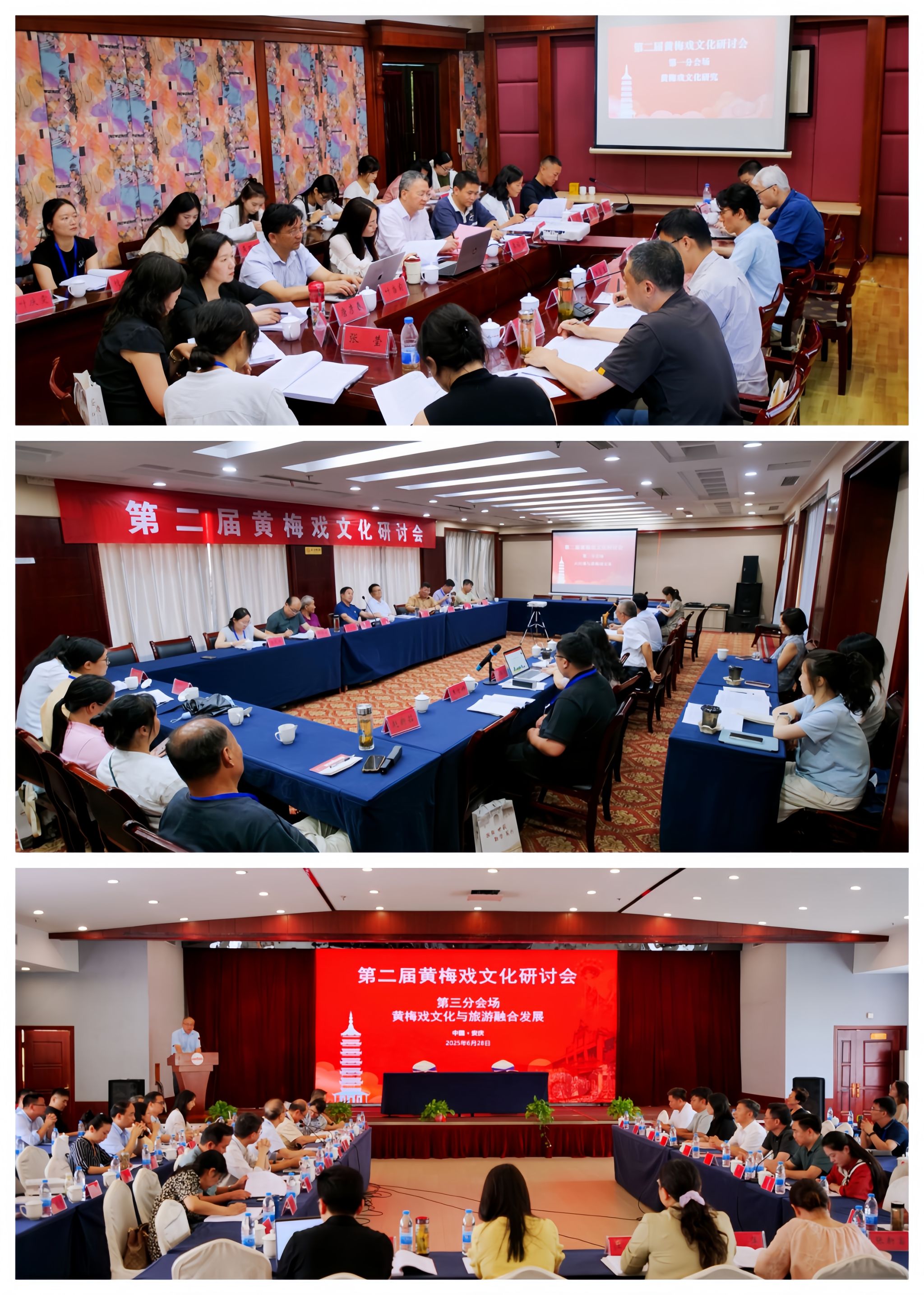6月28日,公司主办第二届黄梅戏文化研讨会,深入学习贯彻习近平文化思想和习近平总书记考察安徽重要讲话精神,推动中华优秀传统文化创造性转化、创新性发展。安徽省政协党组副书记、副主席孙云飞,中共安徽省委教育工委委员、安徽省教育厅副厅长刘业勋,安徽省社会科学界联合会一级巡视员江涛,公司党委书记李福华,董事长彭凤莲,安庆市人民政府副市长李岩等出席开幕式。中国戏剧家协会、中共安徽省委宣传部、中共安庆市委宣传部和安庆市文化和旅游局,以及来自东南大学、同济大学、中国戏曲公司、中国音乐公司、山东艺术公司、华东师范大学、南京师范大学、福建师范大学、上海师范大学、信阳师范大学、温州大学、北方工业大学、广东财经大学、湖北演艺集团、河南省文化艺术研究院、安徽省艺术研究院、黄山公司、安徽黄梅戏艺术职业公司、安庆市黄梅戏(地方戏曲)研究院、安庆市文化旅游产业发展集团有限公司等机构的140多位领导、专家学者、演艺人员和企业界人士参加会议。李福华主持开幕式与闭幕式。