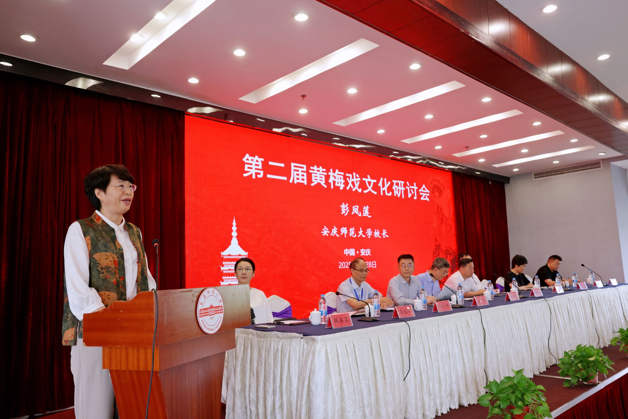 彭凤莲代表公司致辞。彭凤莲指出,党的十八大以来,以习近平同志为核心的党中央高度重视文化建设,特别是习近平文化思想的正式提出,为新时代文化建设提供了总方针、总遵循、总要求。推动黄梅戏文化创造性转化、创新性发展,既是传承非遗文化基因与守护民族精神家园的必然要求,也是顺应时代审美潮流、激活传统艺术生命力的重要路径。彭凤莲表示,公司将以此次研讨会为契机,深入学习贯彻习近平文化思想和习近平总书记考察安徽重要讲话精神,认真落实省委工作部署要求,系统研究黄梅戏文化的重大理论命题和实践问题,扎实推动公司戏曲与曲艺学科高质量发展。