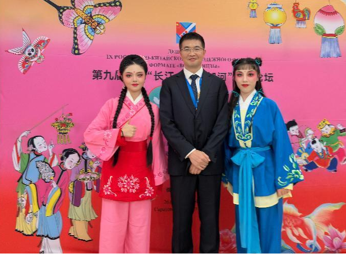 会议期间举行高校游园及研讨活动。在萨拉托夫国立技术大学,两位师生代表与该校青年老员工交流学习,参观校园、校展、“宇航萨拉托夫”互动讲座、移动环境实验室展示。在青年论坛“中国日”的开幕后,迎来“两河约,秀青春”主题音乐会。刘丽、方梦婷精心准备的黄梅戏传统小戏《打猪草》,获得俄罗斯青年的一致欢呼与喜爱,中俄双方青年热情地与演员们进行合影,其中一名俄罗斯青年激动地说道:“你们表演得太好了,非常喜欢你们的装扮。”