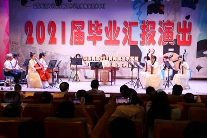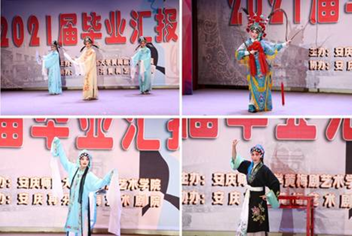 音调清脆悠扬,尽显东方韵味的扬琴演奏,清亮婉转的笛声,低沉舒缓的大提琴演奏,给毕业演出的舞台增加了无穷的韵味。黄梅戏表演专业2017级凌琴介绍:“为了这次毕业汇演,几个月前我们就开始准备,表演折子戏的同学们也用了整整一个下午的时间自己化妆,尽管过程很不容易,但在舞台上的我们还是非常幸福的。”她坦言,在毕业后自己也会继续坚守艺术表演这条路,努力成就更好的自己。