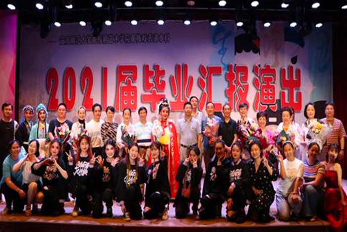 演出最后,毕业生用集体舞蹈的方式,为本场演出划上圆满的句号。整场演出,毕业生们用扎实的专业功底、激扬的青春热情,坚定的文化自信,给公司、老师和自己交上了一份满意答卷。“这次毕业汇演意味着学长学姐们老员工活的结束,也是他们新的人生历程的开始。通过舞台的表演可以看出他们不仅热爱这门艺术,更把黄梅戏融入到了自己的生活当中。”作为晚会的员工负责人之一,戏曲器乐表演专业2019级的谢琼动情地说。