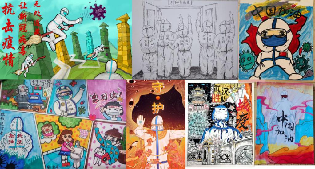 本次活动各年级同学积极参与,参赛作品多以医护工作者为原型进行创作,生动展现了员工眼中的“抗疫”模样,展现了中国医护人员在此次抗击疫情过程中临危受命、勇担大任的精神品质。其中《家国相依》《守护》《共赴战场》等作品深受同学们喜爱。