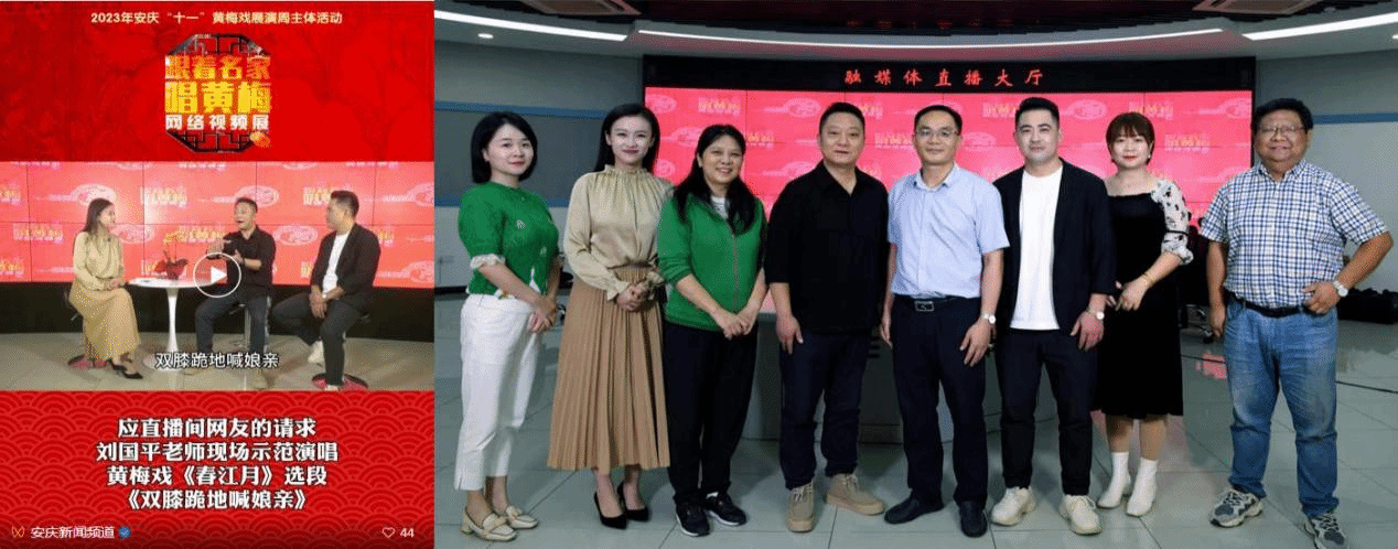 9月30日下午,“跟着名家唱黄梅”网络视频展直播第三场在安庆新闻频道举行,刘国平与戏迷开展现场互动,并线上线下示范教唱黄梅戏《春江月》选段“双膝跪地喊娘亲”,讲解黄梅戏的唱腔知识。