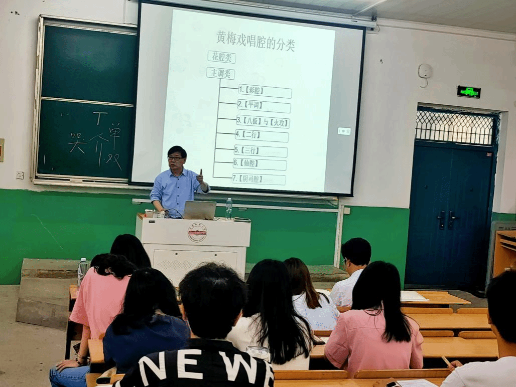 陈精根先生详细介绍了 “花腔”与“主调”两类黄梅戏声腔音乐的历史源流、艺术特点、创作方法与演唱要领,并分享了他为《风尘女画家》等黄梅戏经典剧目作曲的创作经验,强调守正创新对于戏曲创作的重要性。本次讲座深入浅出,边说边唱,化繁为简,既有学术理论总结,又有作品案例分析,大家均感觉受益匪浅。(撰稿、摄影:庞雅心 编辑:徐辉 审核:储著炎 王惠)