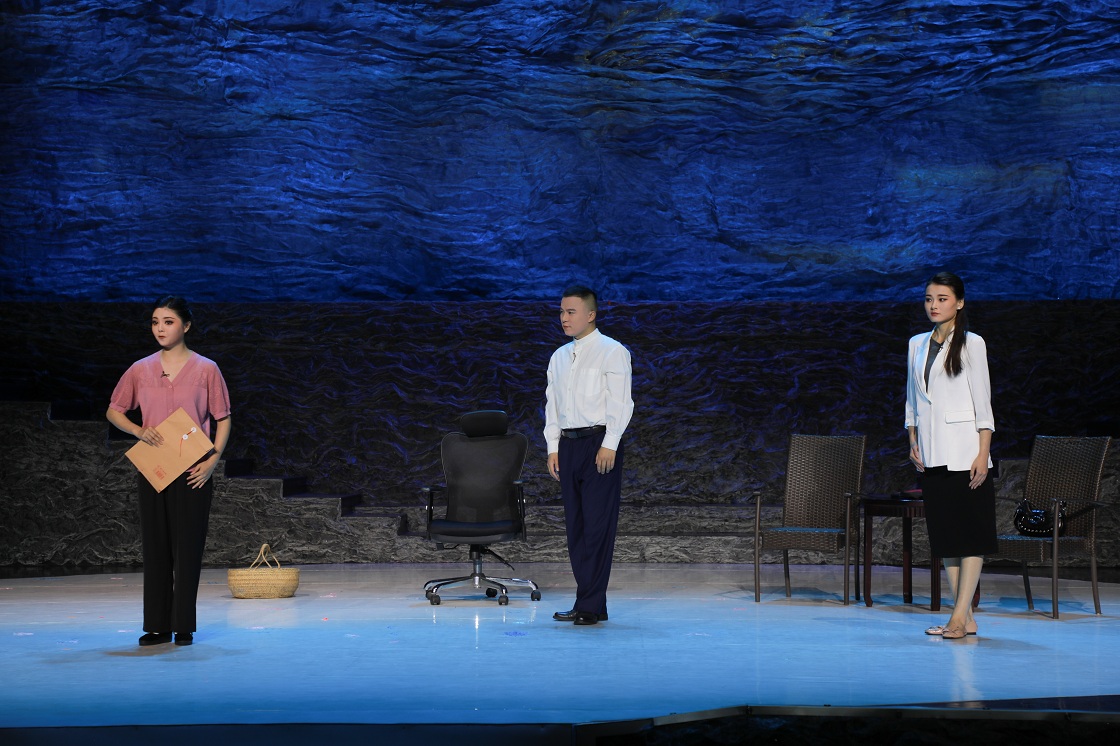 新编黄梅小戏《三认亲》聚焦考编热潮,讲述教育局张科长坚守原则、婉拒“认亲”的故事。李贵娥提野鸡蛋攀关系、王小花拿支票求辅导,两人“认亲”闹剧频出,张科长以父亲遗墨“饮水思源”化解冲突,最终促成“干群鱼水一家亲”。单海、方梦婷、王宇婷等研究生通过诙谐表演,将现实中的人情纷扰与廉洁家风巧妙融合,以戏曲形式传递正能量,展现传统艺术对当代社会的观照。