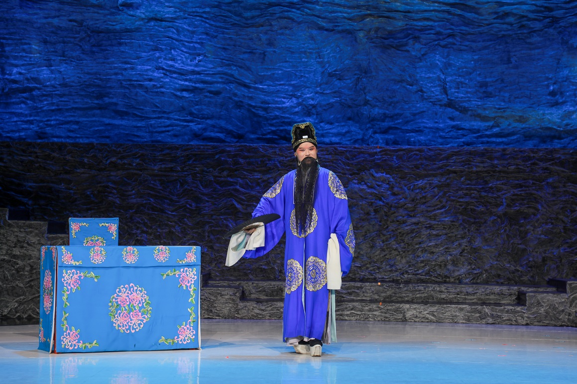 演出在黄梅戏经典剧目《乌金记》选段“吴天寿观书”中拉开帷幕。2025届戏曲表演方向研究生单海同学以扎实的唱功,将角色的震惊、悲愤与决然层层递进地呈现,尤其是通过抑扬顿挫的唱腔和细腻的肢体语言,赢得观众阵阵掌声。