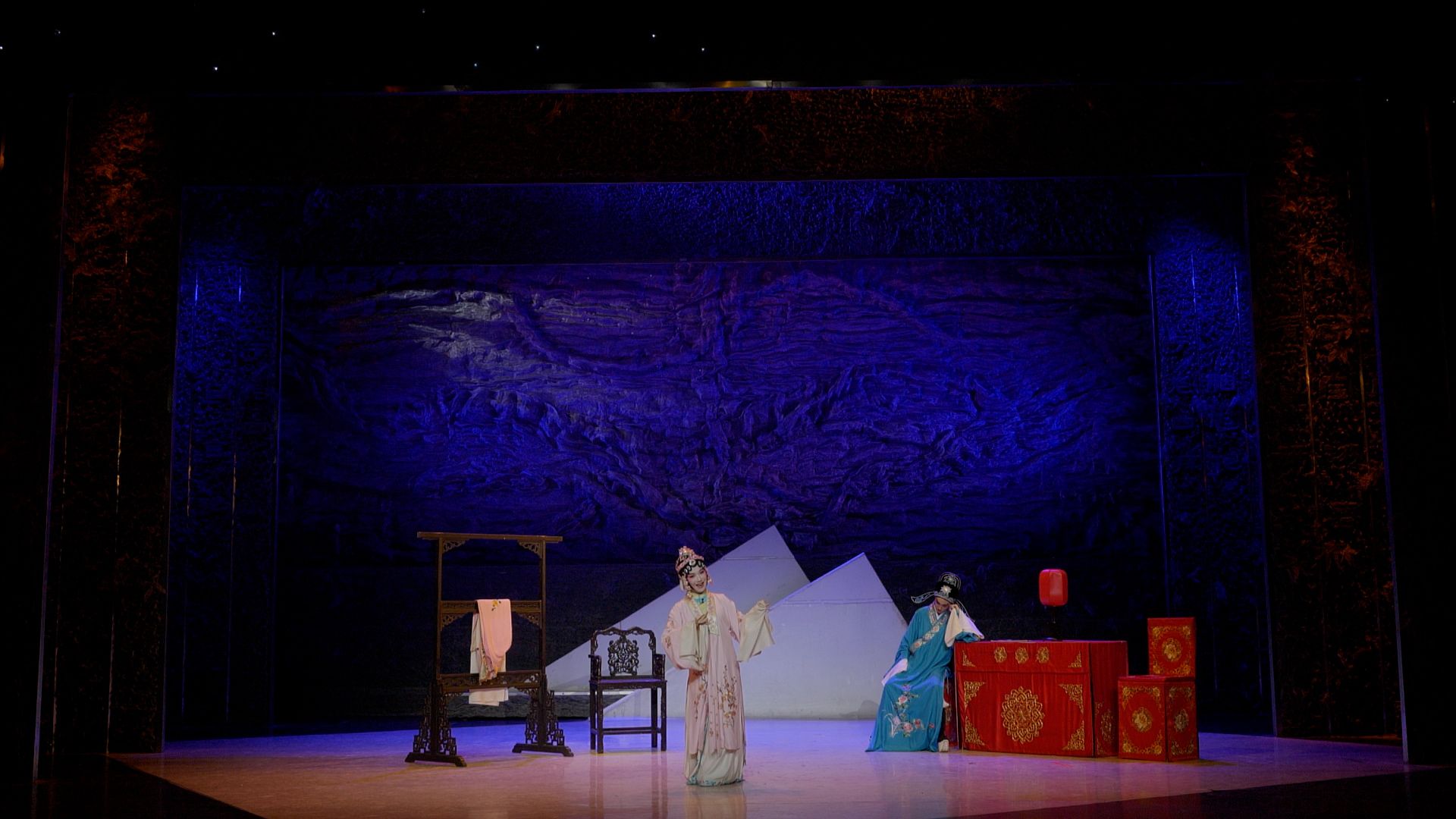 整场演出由2021级戏曲表演专业研究生陈雅琳同学的《血冤》选段“忽听娇儿”拉开帷幕,感人肺腑、深情婉转的唱腔获得现场热烈掌声。随后,2021级戏曲表演专业研究生丁诗文、周地等人依次表演了《牌环记》 《荆钗记》 《小辞店》《泪酒相思地》《祝福》《碧玉簪》等黄梅戏传统剧目或改编、新创剧目精彩片段。周地在《荆钗记》选段中的大段做功表演,恰到好处,自然流畅;丁诗雯在《祝福》选段中的表演,佝偻着腰肩,踉跄着脚步,诉尽祥林嫂一生之苦,一再将演出推向高潮,细腻动人的舞台表演技艺赢得现场声声喝彩。最后,演出在黄梅戏经典剧目选段大联唱中落下帷幕。