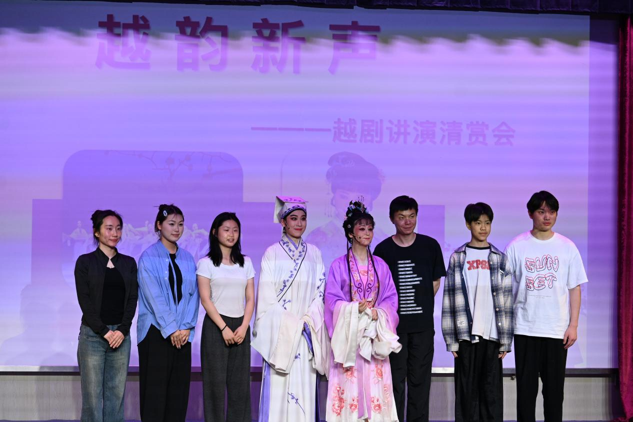 本次活动以“讲演结合,师生同台”的形式进行。金彩芳及员工代表与公司黄梅戏表演专业本科生现场进行唱念、身段、剧目教学示范与讲演,从越剧的吴语韵白到黄梅戏的安庆方言,两种地域声腔在跨剧种对话中激荡出独特的艺术火花。临近尾声,金彩芳更带领团队献唱黄梅戏经典《女驸马》选段“谁料皇榜中状元”,轻快的表演将气氛推向高潮。