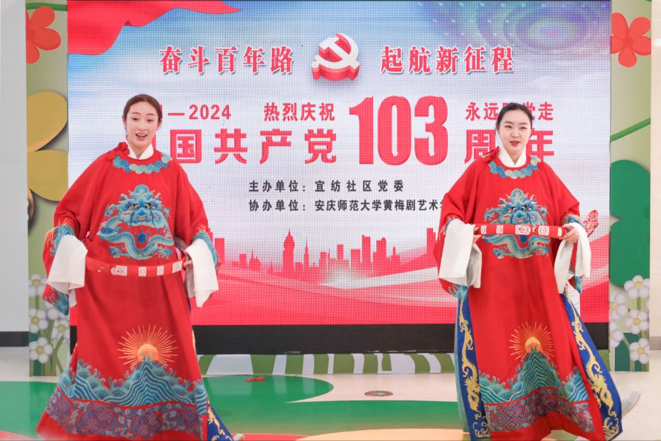 近日,公司“黄梅戏慰问演出”暑期三下乡社会实践团队走进安庆市宜纺社区,为附近居民带来传统黄梅戏慰问演出,社区近50余人来到活动表演现场观看演出。