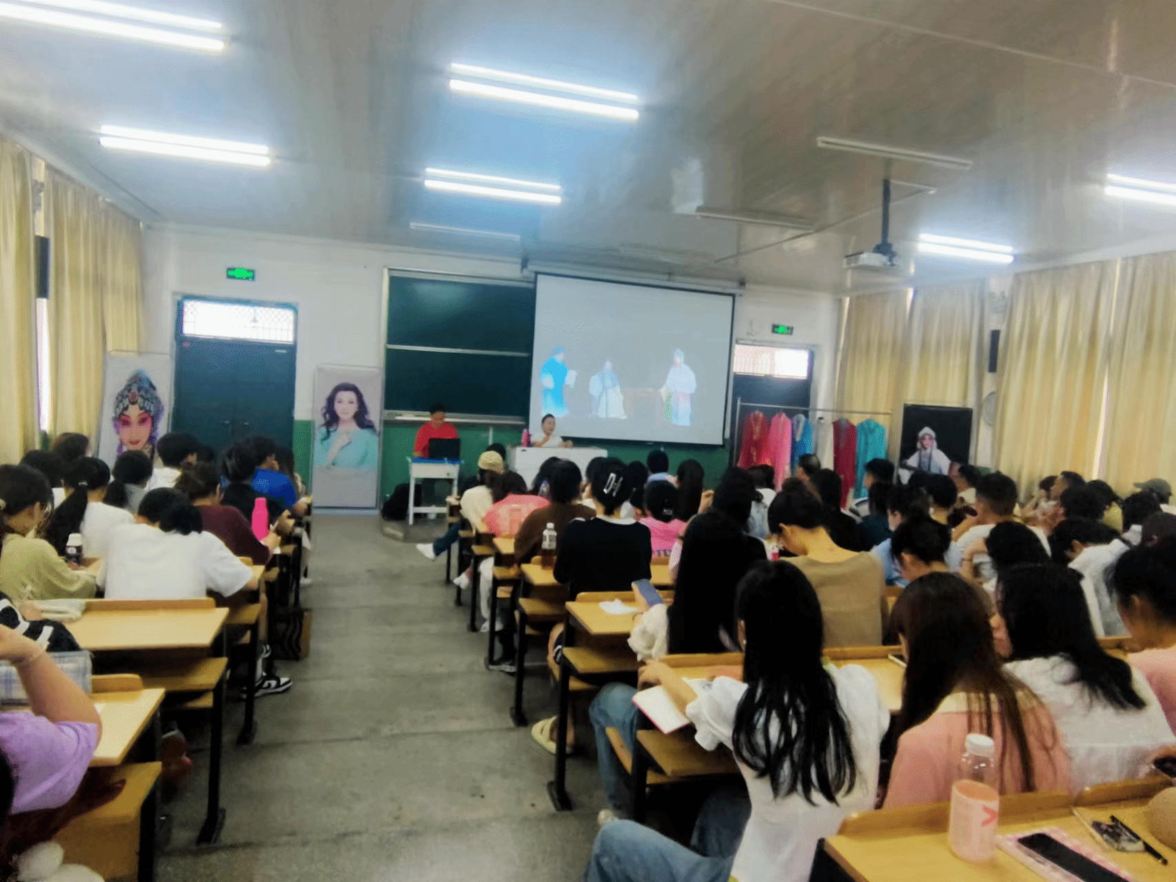 讲座现场精心设计了交流互动环节,同学们踊跃上台与曾昭娟现场互动,近距离感受名家风范并接受艺术家的现场指导。整场讲座理论讲解与现场示范相结合,还有“赵锦棠”精美服饰与头面展示,让人大饱眼福,可谓精彩纷呈。讲座最后,曾昭娟用一段话总结自己的艺术人生:“我始终知道,我从哪里来,到哪里去,我为了谁,我属于谁,在我心里,舞台是一个神圣的地方,观众永远是我的衣食父母。我对舞台始终敬畏如初,从来没有因为自己在艺术上的成熟而有丝毫懈怠。一直到今天,每一次大幕拉开,都是我的朝圣之旅。”